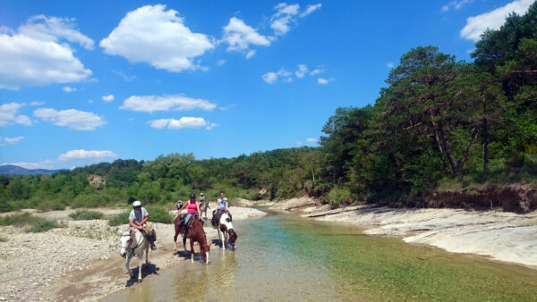 Terre des fous de canyons et de descente sauvages de rios. Vous trouverez votre bonheur de cavalier dans les défilés calcaires et les plaines couvertes d’amandiers, en apercevant toute une faune protégée (vautours, loutres, gypaètes).